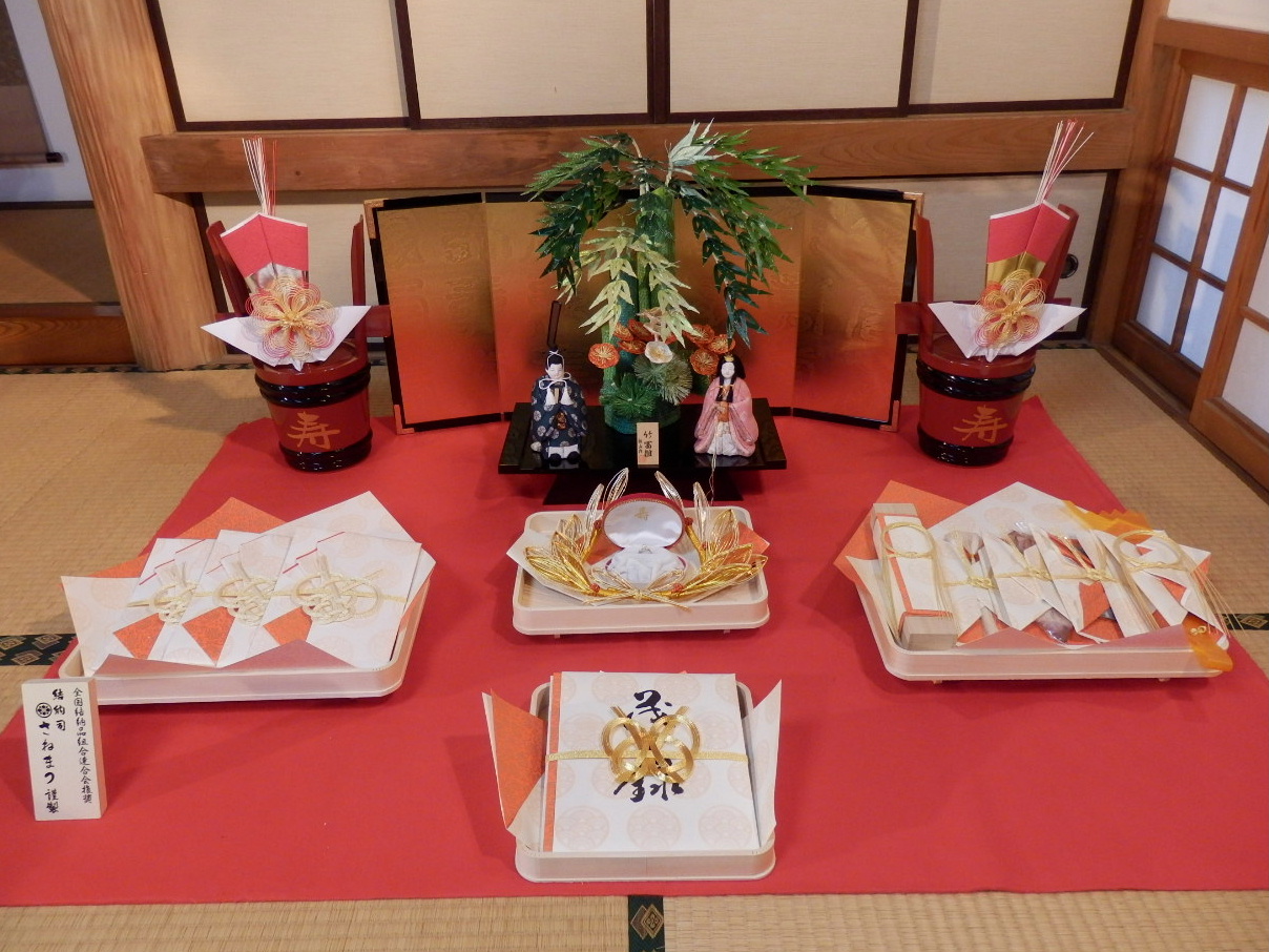 3月3日は桃の節句です。 お目出度い高砂を雛人形のセットに代えた結納品です。 竹富雛セット、三春セットの他もご自由にセットの組み換えができます。 お気軽にご相談ください。